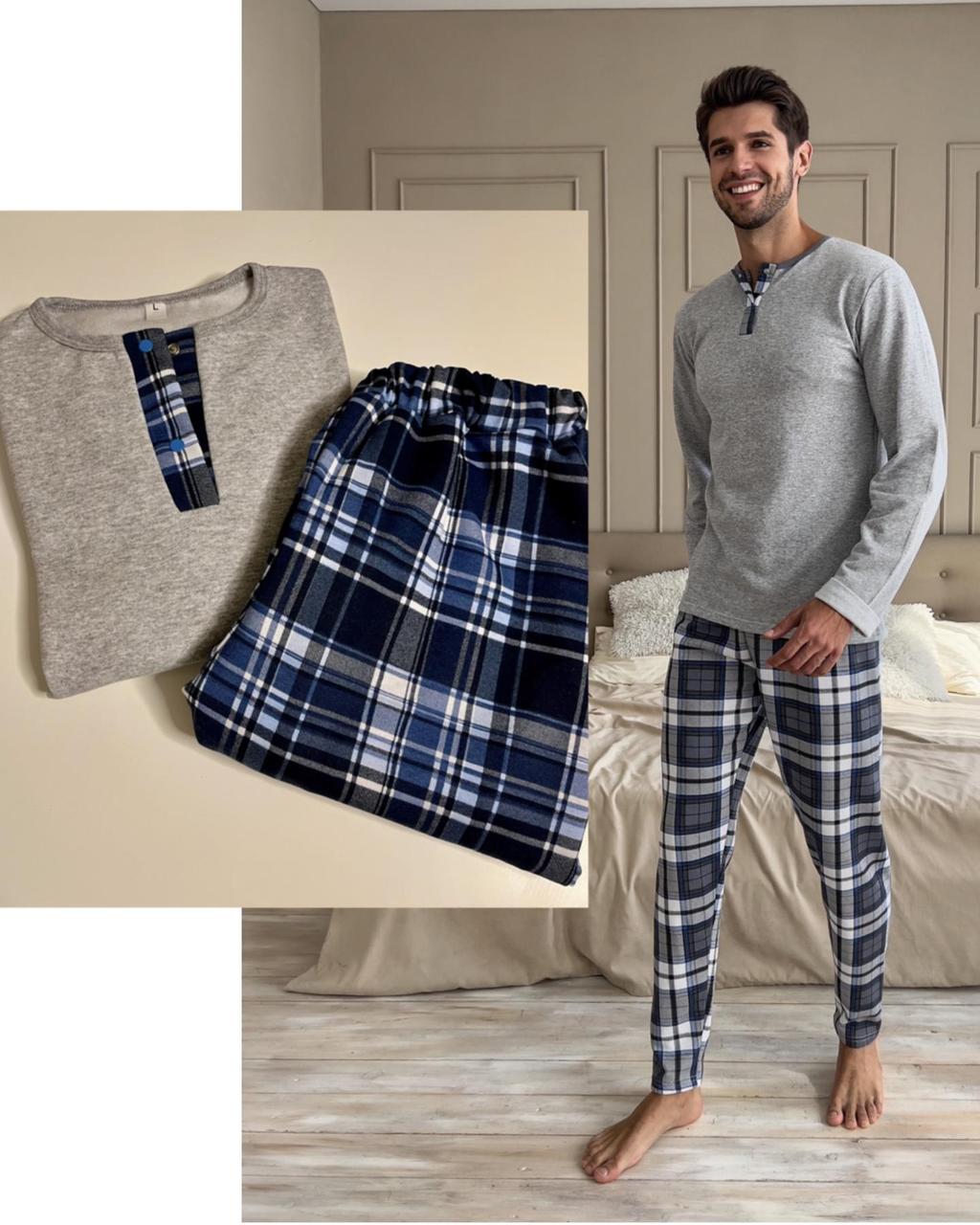 Цей піжамний комплект створений не тільки для сну, а й для затишних домашніх вечорів. Лонгслів у класичному сірому кольорі та штани в синю клітку забезпечать комфорт і тепло в будь-якій ситуації.